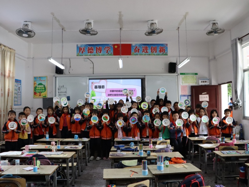 “小朋友们,你们眼中的祖国是什么样的?”一年级二班的教室里,广西师范大学教育学部的青年学子为小朋友们带来了一堂别开生面的绘画课。在大哥哥大姐姐的带领下,小朋友们在纸盘上描绘出自己眼中的祖国。“我的祖国很美丽,有一座座山和一条条河。”“我的祖国有高楼大厦!”小朋友们用稚嫩却清晰的笔触描绘着祖国的模样,一幅幅充满童趣和活力的图画将祖国的繁荣富强和人民的幸福生活呈现在眼前。