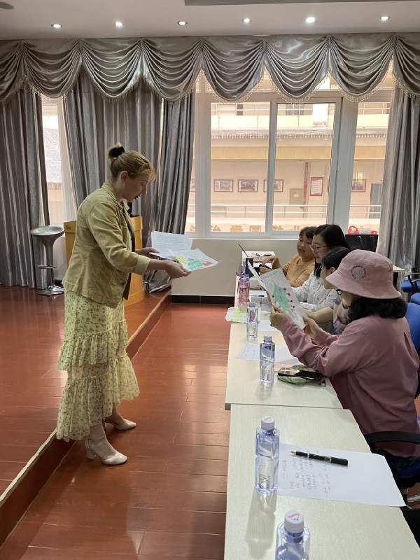 俄罗斯籍学生优利娅分享了自己在广西师范大学担任第二外语(俄语)课程助教的实习经历。在实习阶段,她主要辅助授课老师完成俄语文化课程的教学设计。优利娅的教学对象是108名中国硕士研究生,她尝试将自己的硕士毕业论文的主要研究成果应用于本次实习,即根据俄罗斯套娃式汉语教学模式的思路,重新打造俄罗斯套娃式俄国文化与语言教学模式,从俄文字母到俄文诗词歌曲和童话,环环相扣地为学生呈现出一整套俄罗斯文化教学体系。