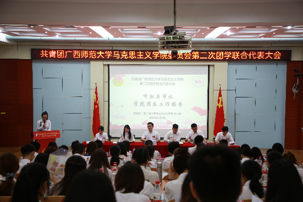 6月6日上午,马克思主义学院于文二区219学术报告厅召开第二次团学联合代表大会。大会审议了学院团委工作报告、学院学生会工作报告、学院研究生会工作报告、团费收支报告,同时审议通过了团委学生会章程。