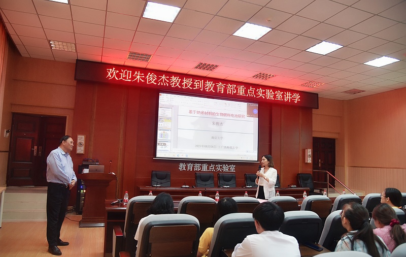 6月6日下午,南京大学朱俊杰教授应邀来到我校作题为“基于纳米材料的生物燃料电池研究”的学术报告。珍稀濒危动植物生态与环境保护教育部重点实验室、环境与资源学院和生命科学学院的近100位师生参与了此次学术活动,现场学术气氛活跃。