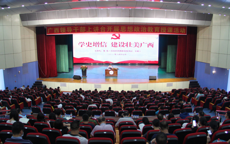 报告会上,朱东从党史学习教育的重要意义、中国共产党的百年党史、学史增信为建设壮美广西作贡献等三个方面,紧扣党史学习教育和习近平总书记在广西考察期间的重要讲话精神,深刻阐释了开展党史学习教育的重大意义、主要内容和重点任务等,全面总结了中国共产党百年奋斗的光辉历程和历史性贡献,并就如何通过学史增信为建设壮美广西做贡献进行了深入解读。