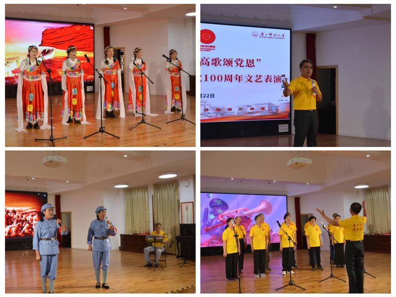 6月22日上午,我校在王城校区学术报告厅举办了以“忠心献祖国 高歌颂党恩”为主题的离退休党员喜迎建党100周年文艺表演。校党委书记邓军、校党委副书记旷永青、校党委常委组织部长林国庆出席此次活动,260余名离退休党员观看和参加了这场文艺表演。
