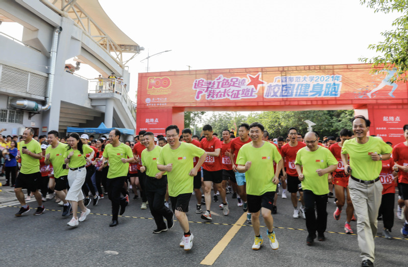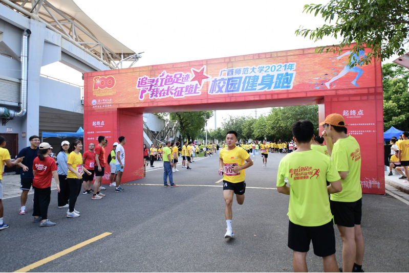 在为庆祝中国共产党成立一百周年建党百年之际,进一步落实全民健身和健康中国国家战略,6月22日,我校举办“追寻红色足迹,我在长征路上”校园健身跑接力赛,在健康运动中学党史、悟思想、强体魄。校长贺祖斌领跑接力赛,副校长黄文韬、校纪委书记莫坷出席活动。及全体在家的校领导和各部门、部分学院(部)主管学生工作负责人出席活动。