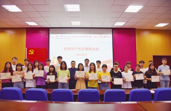 学院党委主要负责人等为优秀学生党员颁发荣誉证书并合影留念