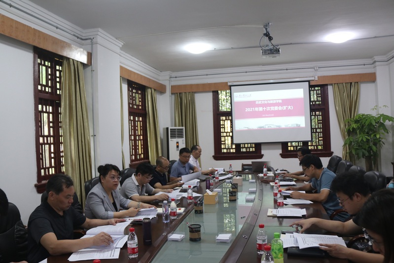 6月23日上午,历史文化与旅游学院在王城校区学院第二会议室召开2021年第十次党委(扩大)会议,学习贯彻落实学校第三督查组专项督查历史文化与旅游学院2021年党建工作汇报会精神,围绕近期党建重点工作,专题研究学院领导班子和人才队伍建设、师德师风建设、党员队伍建设、学生工作和就业推进工作、共青团、研究生等群团组织工作,并开展纪律警示教育。学院党委委员参加会议,纪委委员、办公室主任、团委书记、专职组织员、各党支部书记列席会议,会议由学院党委书记主持。