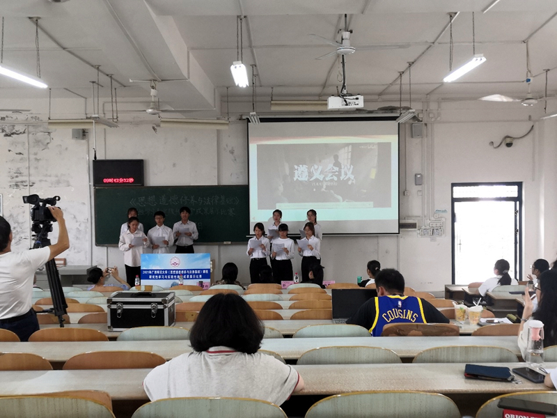 《思想道德修养与法律基础》课程的参赛选手在进行展示