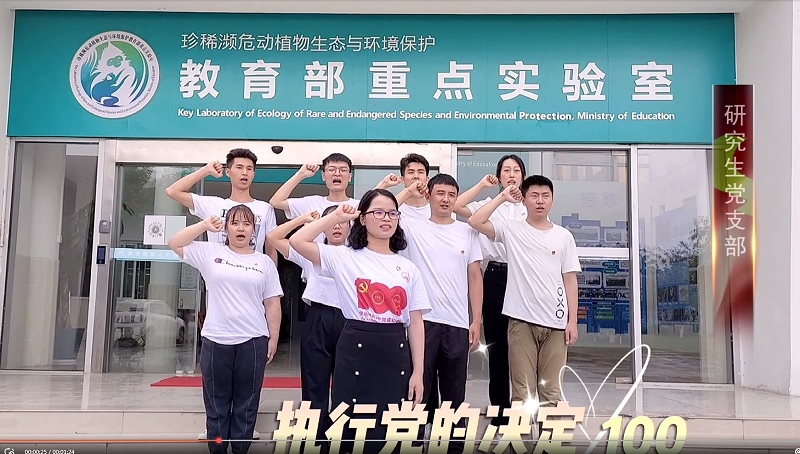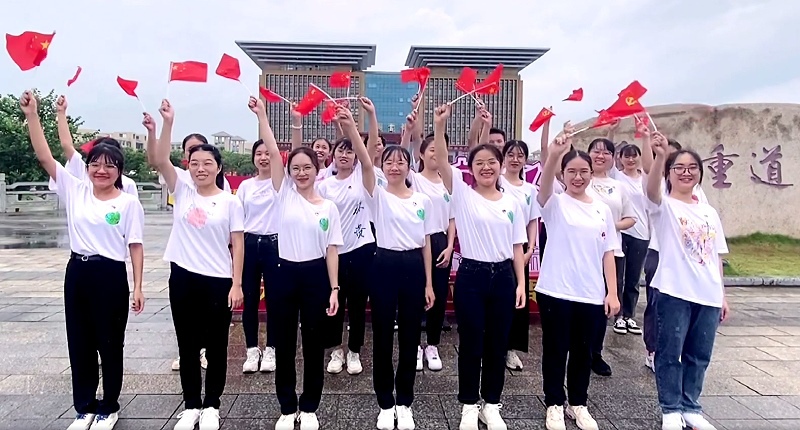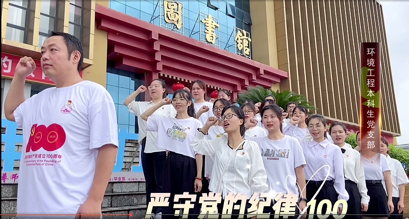 7月1日中午,雁山微雨,校园郁郁葱葱,党旗格外鲜艳。环境与资源学院党委副书记、全体辅导员以及新发展学生党员,庄严宣誓,共同庆祝中国共产党百年华诞,献上生日祝福。