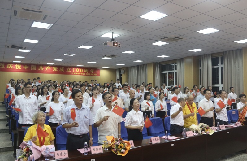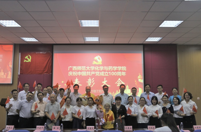 校党委副书记赵铁、全体学院领导班子、党委委员、纪委委员、“光荣在党50周年”纪念章获得者代表、自治区党委教育工委、广西师范大学优秀共产党员、优秀党务工作者、先进基层党组织获奖代表及个人、广西师范大学化学与药学学院优秀共产党员、优秀党务工作者、先进基层党支部获奖代表及个人、学院民主党派代表、无党派人士代表、各支部书记、党员代表出席表彰大会。