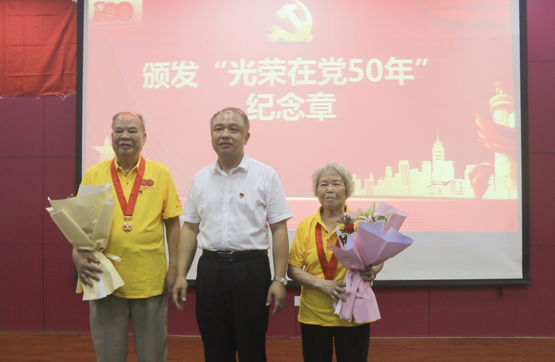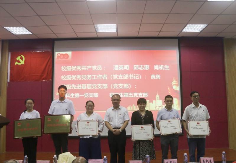 会上,学院党委负责人宣读“光荣在党50年”纪念章颁发对象名单;学院本科教学工作负责人宣读了学院《关于表彰我院荣获自治区党委教育工委优秀共产党员和广西师范大学优秀共产党员、优秀党务工作者和先进基层党组织的通报》,校党委副书记赵铁同志为“光荣在党50年”纪念章获得者代表、获得自治区党委教育工委优秀共产党员、校级“两优一先”获奖支部和代表颁奖;学院副院长宣读《关于表彰我院荣获自治区党委教育工委优秀共产党员和广西师范大学优秀共产党员、优秀党务工作者和先进基层党组织的通报》,学院党委负责人为院级先进党支部、院级优秀共产党员颁奖,学院负责人为院级优秀党务工作者颁奖。随后,“光荣在党50年”纪念章获得者代表陈琼老同志、自治区党委教育工委优秀共产党员获得者覃江克同志、新发展党员代表雷尧同志分别代表发言。