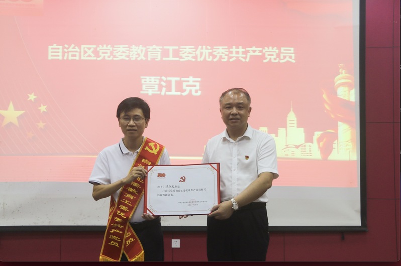 赵铁同志给“自治区党委教育工委优秀共产党员”颁奖