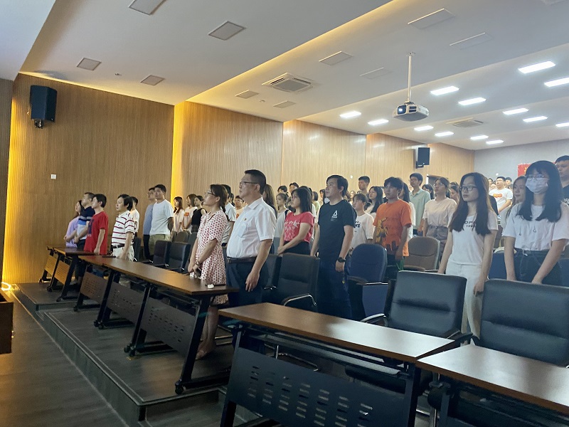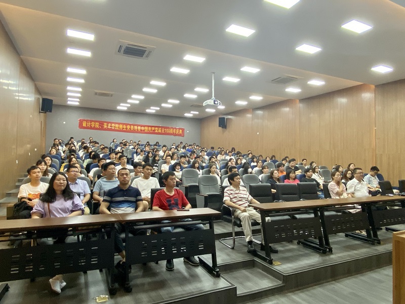 2021年7月1日上午8点,设计学院组织师生党员在纯道楼001报告厅集中收看庆祝中国共产党成立一百周年大会直播。学院领导班子成员、党委委员、党支部书记以及各师生党员共同观看大会直播,认真聆听习近平总书记在庆祝中国共产党成立一百周年大会上的重要讲话。