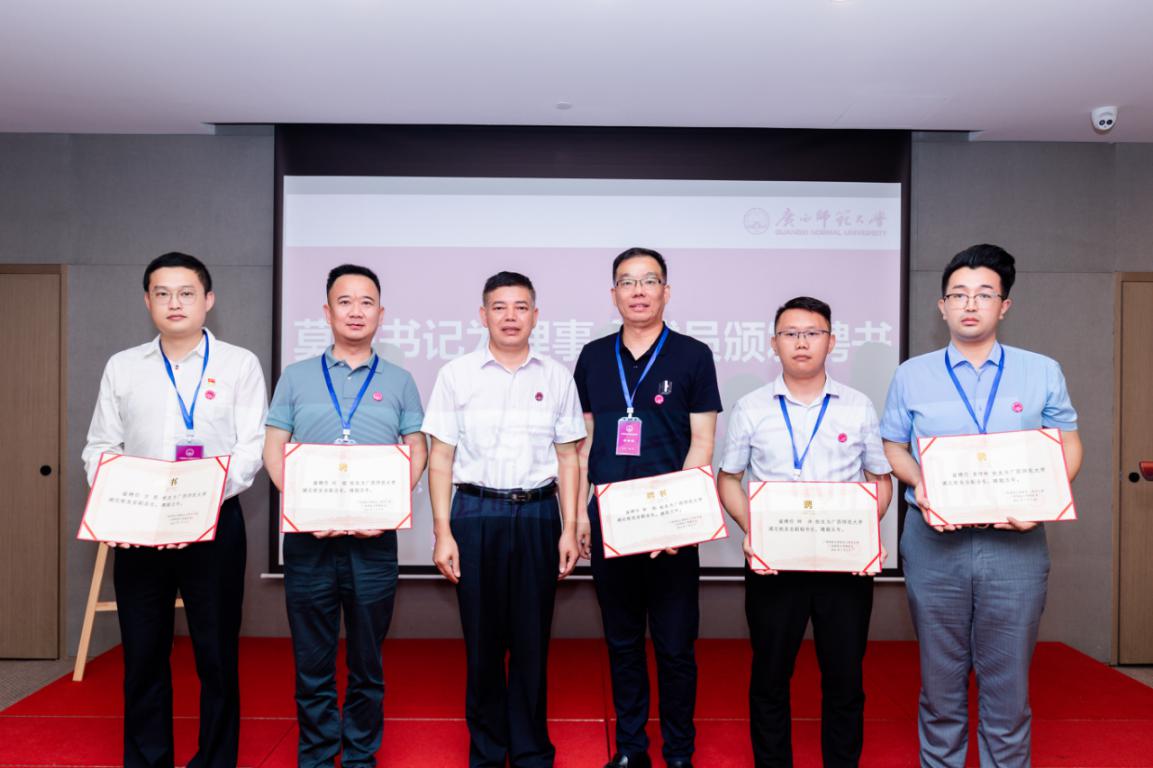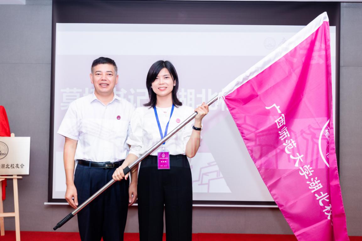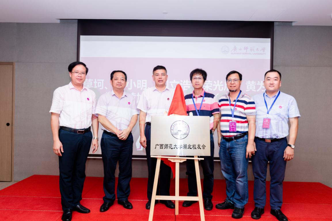 会上,校友工作办负责人宣读了《关于同意成立广西师范大学湖北校友会的批复》;审议通过了湖北校友会章程和组织机构成员名单;莫坷、校友工作办主要负责人、文学院/新闻与传播学院主要负责人与湖北校友代表荣光启、黄为超、黄旭东共同为湖北校友会揭牌;莫坷给湖北校友会会长授予会旗并为组织机构成员颁发了聘书。