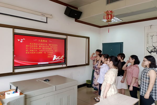活动最后,党员教师们一起重温了入党誓词,学习了习近平总书记在庆祝中国共产党成立100周年大会上的重要讲话精神。大家一致认为,习近平总书记的重要讲话不仅展现了马克思主义政治家的格局与气度,更体现了强烈的历史担当和炽热的为民情怀。党员们聆听后深受鼓舞,心潮澎湃,更加坚定了自己为共产主义事业奋斗终生的理想信念。