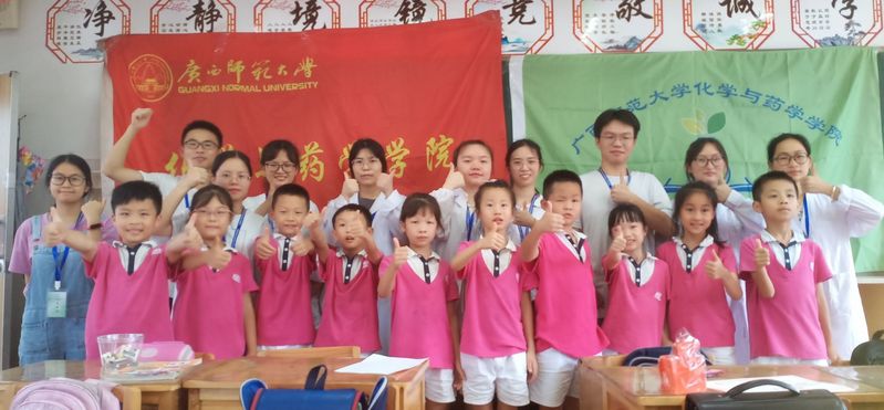 为充分发挥化学与药学学院学科专业优势,加强小草科普社团公共服务平台建设,在推动科普知识在小学校园的传播普及的同时,激发小学学生对化学知识的学习兴趣,拓宽学生的科学视野,培养学生的科学精神,7月9日广西师范大学化学与药学学院小草科普社团赴桂林市卓然小学开展科普进校园活动。