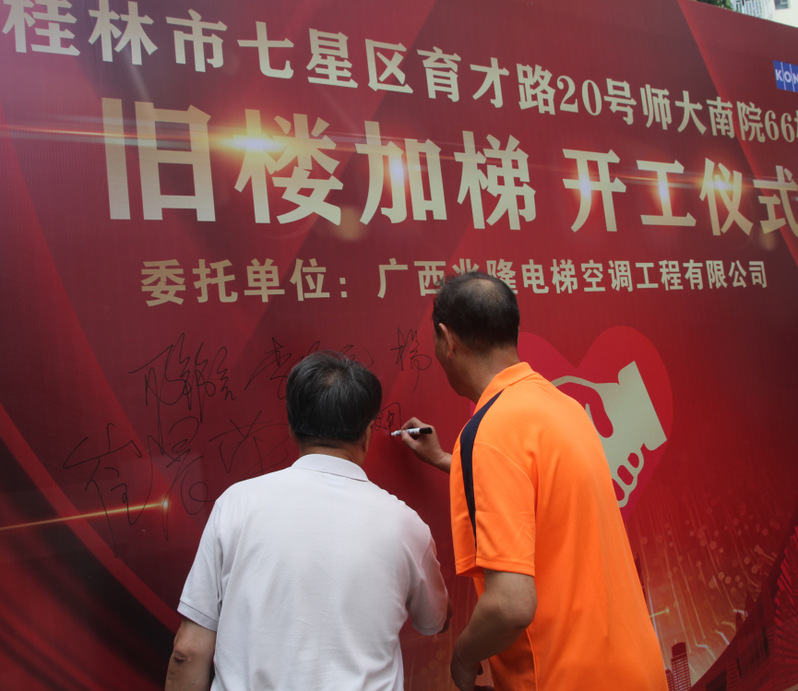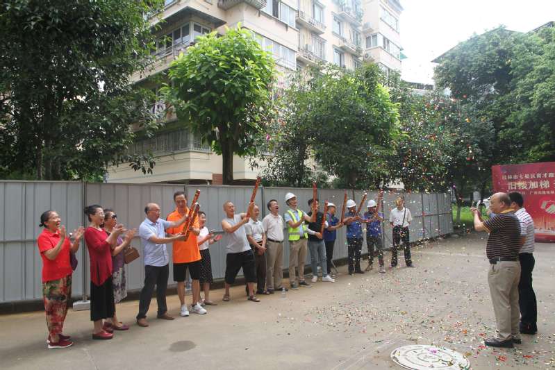 66栋楼的退休教师杨老师开心的说,我母亲已经90多岁了,之前来桂林住过几天,但很快因为上下楼的不便回到了老家,去年,小区里居民自愿要加装电梯,征询一开始反响就很热烈。早点安装电梯,我们就能早点享受,现在我们小区通过自愿申请加装电梯,改善了住宿环境,方便了我们的出行,大家都非常开心。