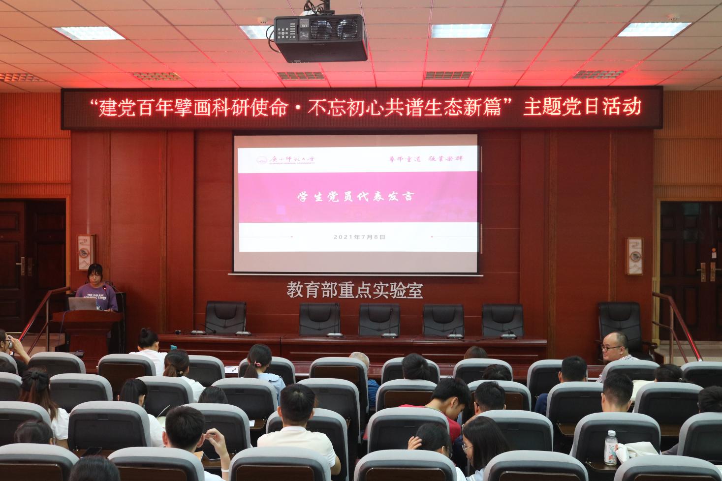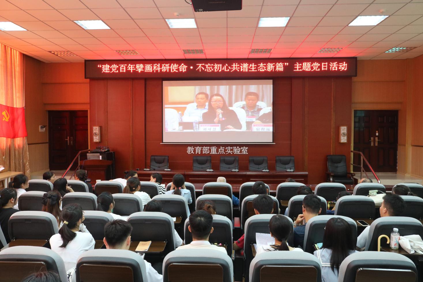 百年风雨兼程,百年步履铿锵,为庆祝建党百年,擘画发展新篇,生态学系与行政教工党支部和生态学专业研究生党支部于2021年7月8日下午在伯康楼112报告厅联合开展“建党百年擘画科研使命,不忘初心共谱生态新篇”主题党日活动。两支部全体党员及师生代表共计70余人参加此次活动,活动采取线上线下同时进行的方式,由生态学专业研究生党支部书记主持。