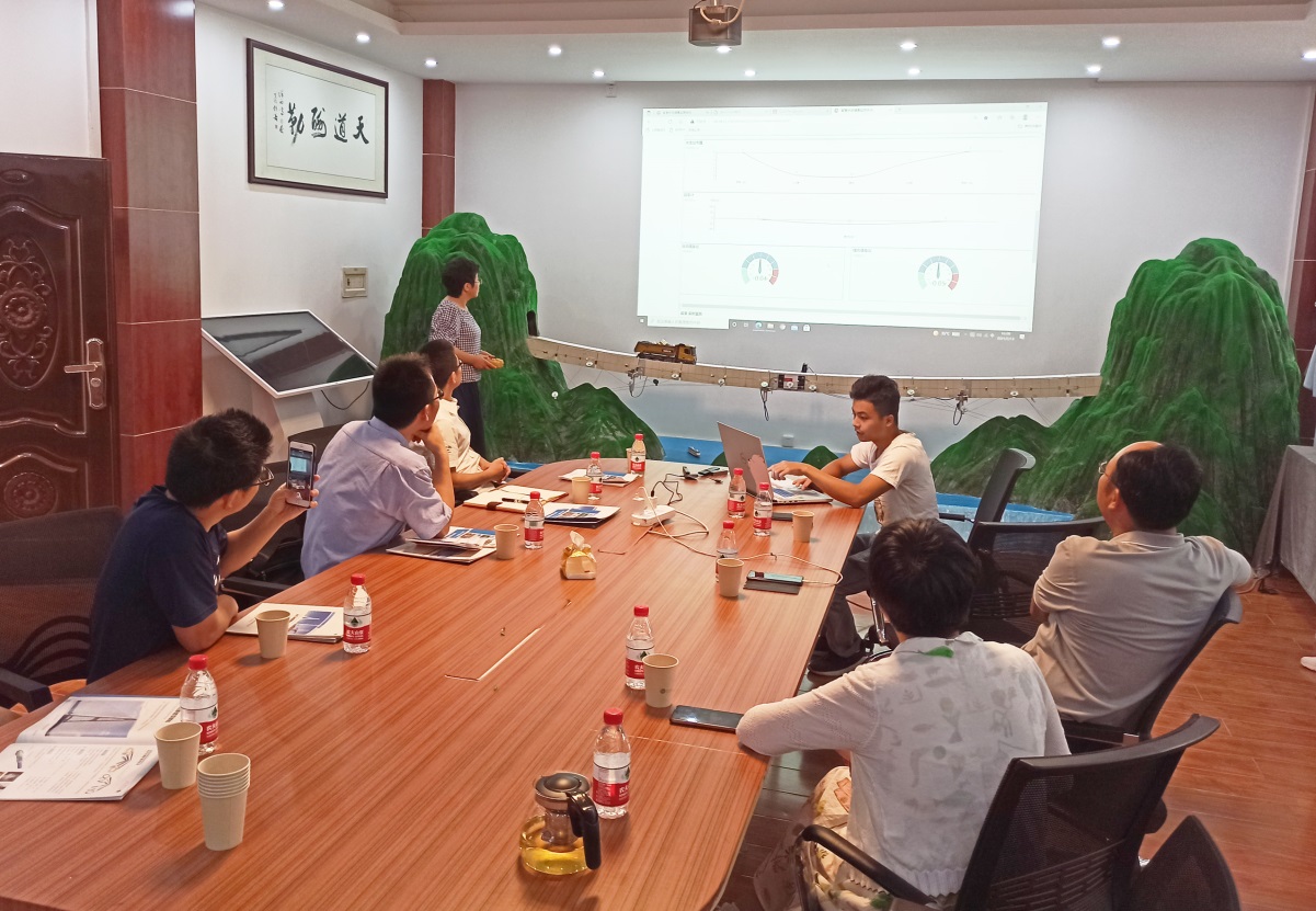 实地走访交流后,物理学院教研团队一行与朱万旭教授团队开展了座谈交流。座谈会上,朱万旭教授首先介绍了光纤光栅传感在工程中的应用前景与优势,随后演示了团队搭建的桥梁监控系统模型,并展示了团队承担的湖南衡阳东洲湘江大桥实时健康监控数据。物理学院分管教学副院长就我院在光纤传感方面的研究情况、光纤光栅研究平台的建设情况等作了介绍。双方还就实际工程应用中布拉格光栅啁啾现象的处理、不同解调仪误差等问题展开讨论、交流经验,并约定今后将进一步加强交流、积极开展一些具体的合作研究。