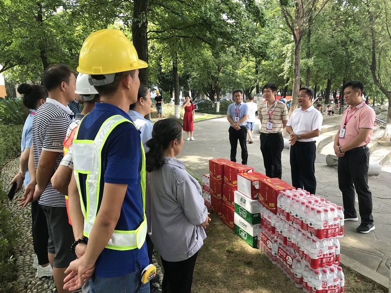 当天上午,林副校长带领走访了三个校区正在建设施工的工地,实地走访查看雁山校区四期公寓刷白工程、王城校区体育馆改造工程、育才校区幼儿园建设工程、育才二舍、三舍宿舍改造工程等施工工地,详细了解生产施工情况,关切地询问防暑降温措施落实情况,并鼓励大家面对高温“烤验”,要发扬敢于拼搏的精神,战胜困难,按质按时搞好生产。他叮嘱施工队管理人员要把防暑降温措施落实好,要优化作业方式,编织好防暑降温“安全网”,确保每一位职工的身心健康和作业安全。