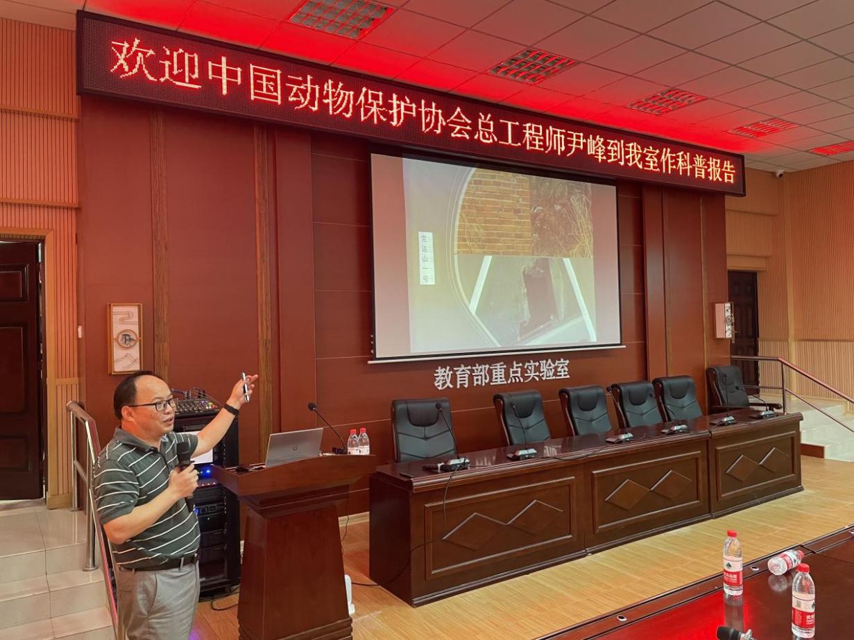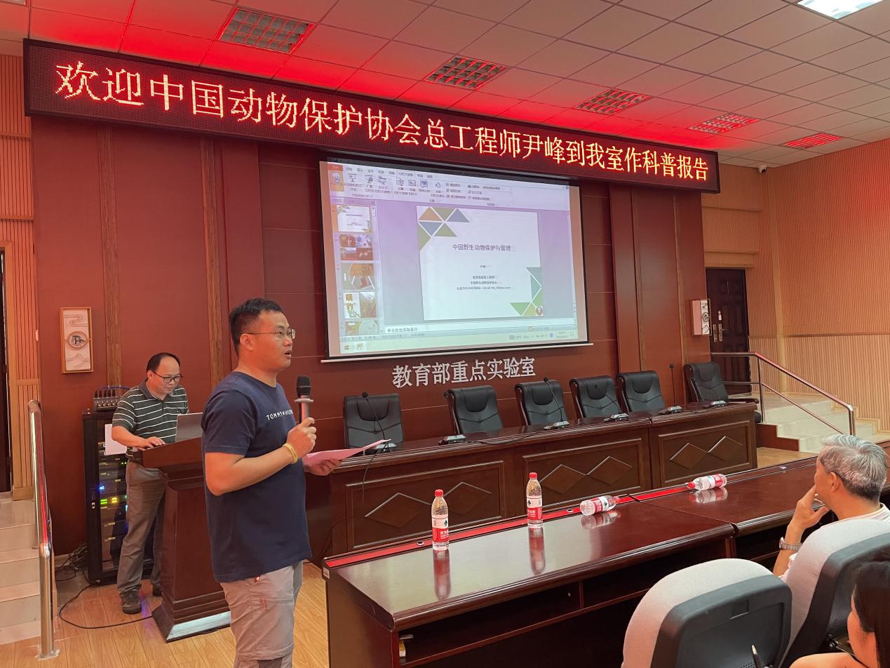 9月14日下午,我室邀请中国野生动物保护协会总工程师,国家林业和草原局“保护森林和野生动植物资源先进个人”尹峰老师作主题“中国野生动物保护与管理”专题报告。本次报告于在珍稀濒危动植物生态与环境保护教育部重点实验室112室开展,报告会由范鹏来博士主持,生命科学学院2021级全体研一新生等认真听取了报告。