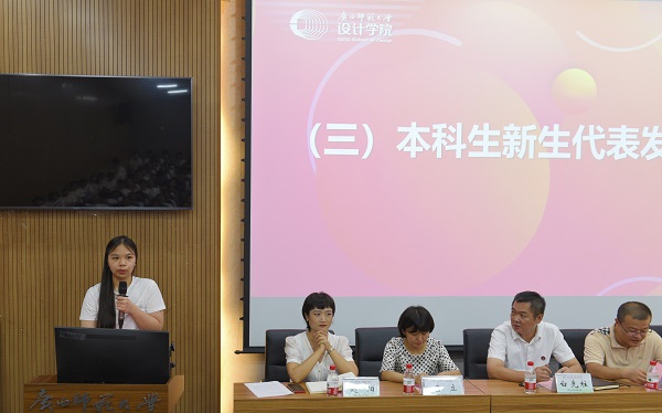 来自香港的黄煜儿作为2021级本科生新生发言。她表示对在入学过程中给予自己帮助的老师、师兄师姐表示衷心的感谢,表达了对于即将到来大学生活的憧憬与期望。希望在未来四年的学习,传承设院院训精神和风骨,严谨踏实治学,成为一名让学院骄傲的学生。