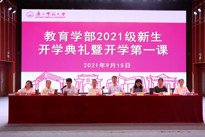 9月15日上午,广西师范大学教育学部2021级新生开学典礼暨开学第一课在雁山校区音乐学院三楼演艺厅举行。教育学部党政领导、系主任、班主任、专职辅导员以及全体2021级全体本科生参加开学典礼暨开学第一课。典礼由学部党委相关负责人主持。