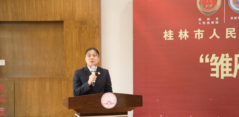 桂林市人民检察院检委会专职委员甘桂明、广西师范大学法学院院长、桂林市雁山区人民检察院党组书记、检察长潘险峰分别为本次活动致辞。甘桂明专委表示,未成年人是祖国的未来,民族的希望。“雏雁护航队”作为桂林市未成年人检察的一颗“明星”,在广西师范大学法学院的共同建设下,取得了优异的成绩。本次三方协议的签订,定将使“雏雁护航队”工作再上新台阶。