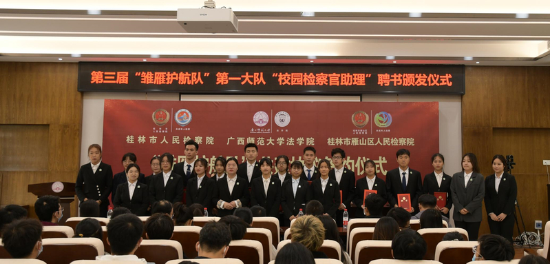 法学院主要负责人表示,“雏雁护航队”是桂林市雁山区人民检察院与广西师范大学法学院共同组建的一支公益普法团队。成立两年来,一批批“校园检察官助理”在检察官的指导下,走出“象牙塔”,为地方普法工作贡献了自己的力量。此次三方协议签订以后,学院将进一步发挥学科和专业优势,在“雏雁护航队”的队伍建设、专业能力培养、普法活动保障等方面给予更大的支持,与检察系统共同将这支队伍打造成为享誉区内外的学生专业实践特色品牌,培养德法兼修综合发展的高素质法治人才。