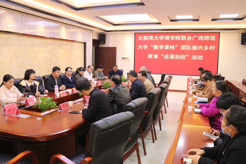 12月20日,广西师范大学“数学课栈”团队联合北部湾大学在上思县上思中学开展振兴乡村教育“送课到校”活动。广西师范大学数学与统计学院党委负责人,北部湾大学、广西民族大学、南宁师范大学、玉林师范学院、百色学院、河池学院的教师代表,上思县教科局党组书记、局长,上思县各中小学校领导以及“数学课栈”团队导师、成员参加本次活动。