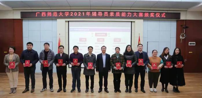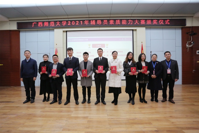 本次大赛包括基础知识测试、谈心谈话、案例研讨三个环节。大赛注重理论与实践相结合,完全按照国赛、区赛的赛制来设定环节,比赛内容既涉及到大学生思想政治教育工作的各种理论知识,也与辅导员工作紧密结合,比赛中的谈心谈话、案例研讨环节都是辅导员工作实际中碰到的问题,考察的是辅导员分析判断能力、沟通交流能力和组织协调能力。其次是注重队伍建设,学校全体专职辅导员均参与了基础理论知识测试和思政工作案例评比,奖项分别设置了团体奖和个人奖。其中38名选手全程参加了比赛,参赛人数覆盖全校专职辅导员的近三分之一。本次比赛还邀请了全国、全区辅导员素质能力大赛一等奖获得者等区内行业专家担任大赛评委。经过紧张激烈的比拼,最终,吴纬、廖旭、唐琼琼、游晶晶4位老师荣获一等奖,陈艺中、蒋琳、辛志广、杨宁、班宁、周驰亮6位老师荣获二等奖,唐玉福、赵剑光、朱喆、韩明威、李丹、高薇、何才超、秦乐8位老师荣获三等奖。此外,比赛还决出团体一等奖3名,团体二等奖4名,团体三等奖5名,“理论达人奖”10名,“优秀案例奖”5名。