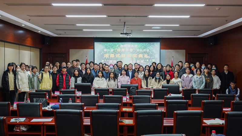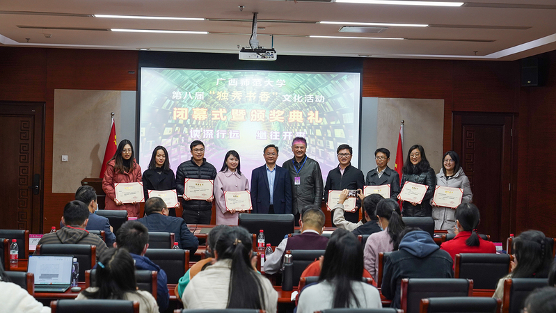 12月23日,我校第八届“独秀书香”文化活动闭幕式暨颁奖典礼在雁山校区图书馆204室隆重举行。校党委常委、副校长林春逸出席活动,校党委宣传部、学工作部(处)、研工部、校团委、教务处及部分二级单位负责人,获奖人员以及部分师生代表参加了本次活动。