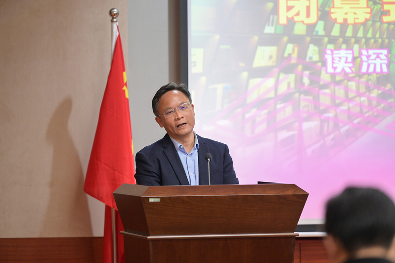林春逸在闭幕式致辞中指出,阅读可以丰富一个人的有限人生,可以涵养一个民族的精神气质,可以铸就一个国家的文化根基,是传承文明、更新知识、开启智慧、提高民族素质的基本途径。他充分肯定图书馆坚持“文化育人、服务育人”的初心使命,为学校人才培养、科学研究、社会服务和文化传承创新等方面作出了重要贡献。他希望图书馆全体馆员继续保持优良传统,自觉承担起“举旗帜、育新人、兴文化、展形象”任务,充分发挥“文化传承、文化创新”主阵地作用;继续坚持“以本为本”,进一步增强图书馆的学科教学服务、信息技术支撑、人才培养协同作用,推动阅读服务向学习研究各环节延伸,向学生社区各区域延伸,向文化建设各领域延伸;继续打造好、宣传好、传播好“独秀书香”品牌,让更多同学了解“独秀书香”,喜欢“独秀书香”,参与“独秀书香”,让“独秀精神”不断传承和发展下去,为服务学校高质量内涵式发展和“双一流”建设做出新的贡献。