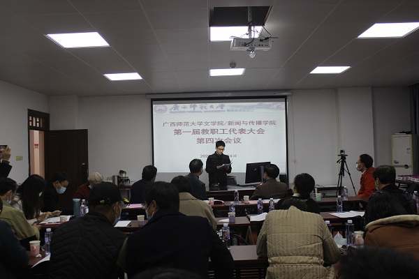 正式会议主要围绕四项议题召开,一是听取并审议2021年学院工作报告和财务报告;二是听取并审议学院工会2021年工作报告;三是审议表决《广西师范大学文学院/新闻与传播学院集体活动激励办法(试行)》;四是审议表决《广西师范大学文学院/新闻与传播学院“十四五”发展规划(2021-2025年)》。