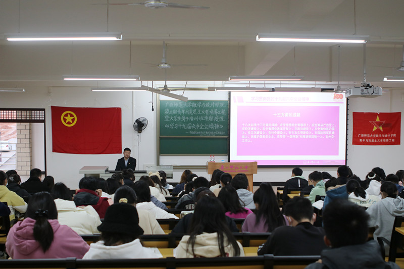 为深入学习贯彻党的十九届六中全会精神,深刻理解党百年奋斗的历史意义,12月23日,数学与统计学院党委负责人在理科楼为第九期青年马克思主义者培养工程暨大学生骨干培训班学员作党的十九届六中全会精神形势与政策报告。