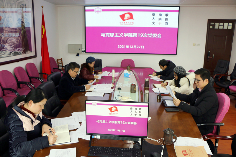 12月27日,马克思主义学院党委在育才校区第二文科楼506会议室召开党委会,专题研究巡察整改推进工作,推动2021年12月份整改任务高质量完成。学院领导班子全体成员、学院党委委员出席会议。办公室主任、专职组织员、团委书记列席会议。