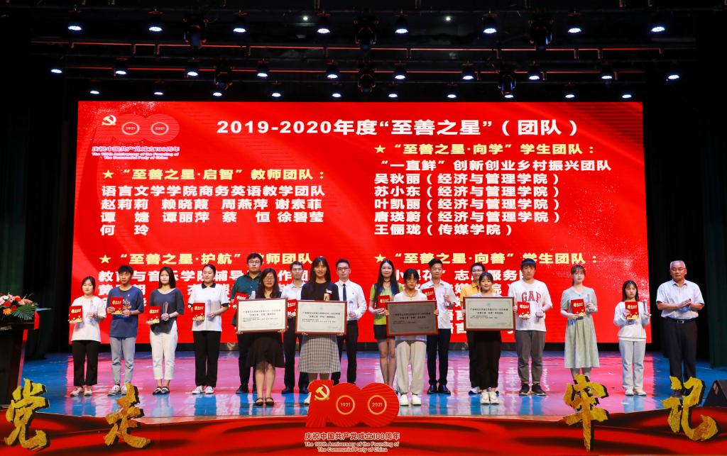 副校长宣读关于表彰桂林学院2019-2020年度“至善之星”团队和个人的决定。副校长为2019-2020年度“至善之星”个人和团队颁奖。