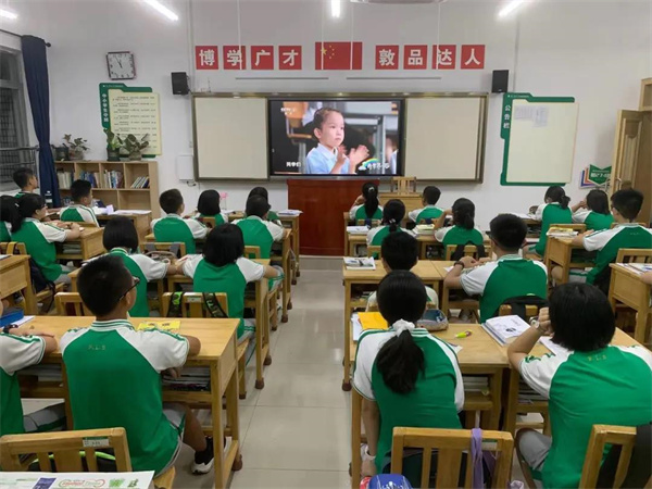 9月1日,广西师范大学附属外国语学校组织学生在教室观看由中宣部、中央党史和文献研究院、教育部、国家卫健委、中央广播电视总台联合主办的《开学第一课》。