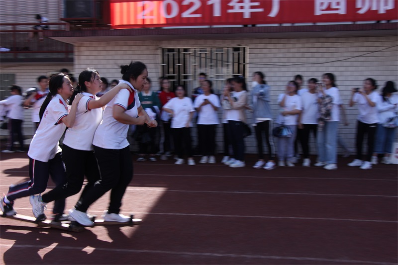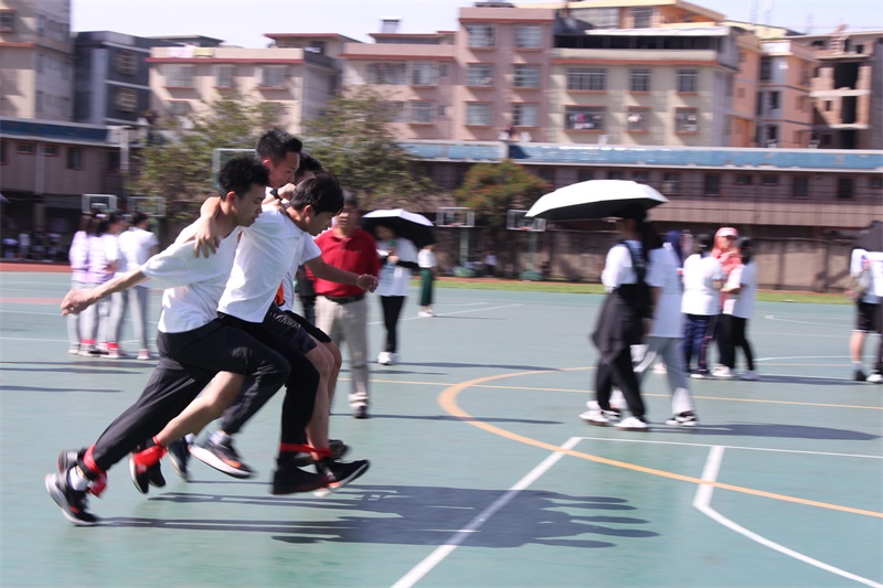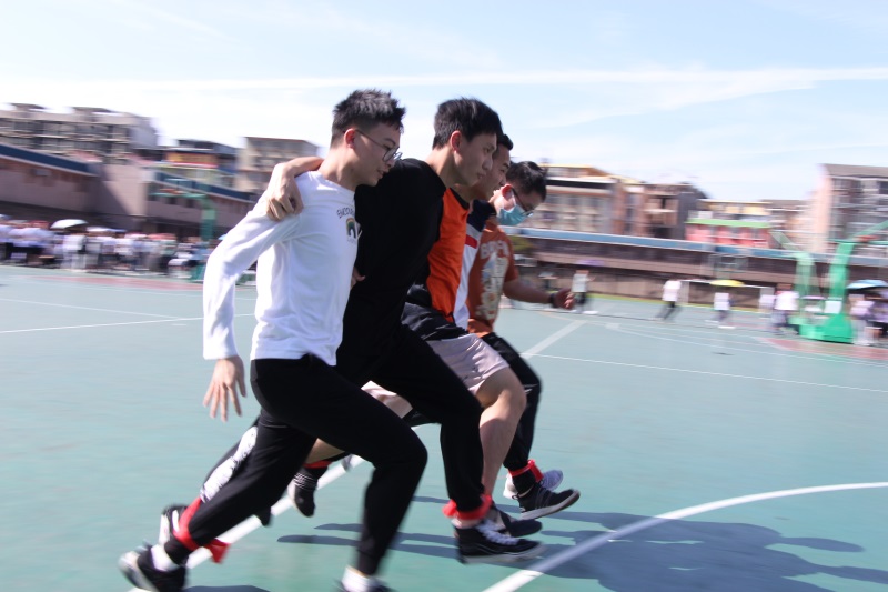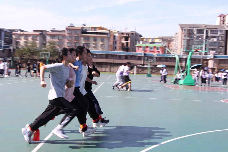 本次运动会参赛项目有:50米板鞋接力、5人6足、绕“8”字跳长绳。5人6足项目把本次运动会推向了高潮。赛场上的运动员们不仅顽强拼搏、更能团结合作,不仅展现了自己的体能素质,团结协作的集体意识也得到了加强。赛场内外充满健康快乐的体育氛围,实现了“在快乐中运动,在运动中快乐”的目标。