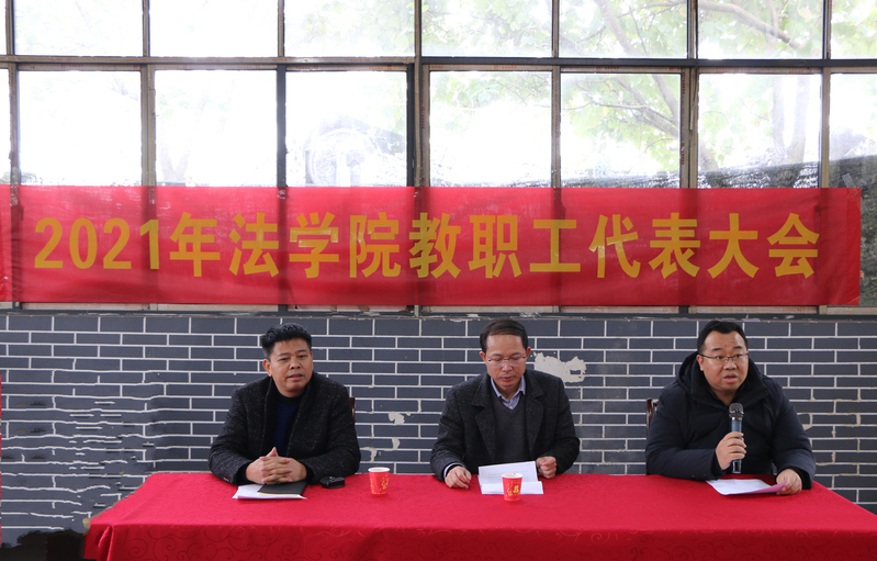 12月31日,法学院召开2021年教职工代表大会,学院党政领导班子成员以及全体教职工参加会议,大会由学院工会主席主持。