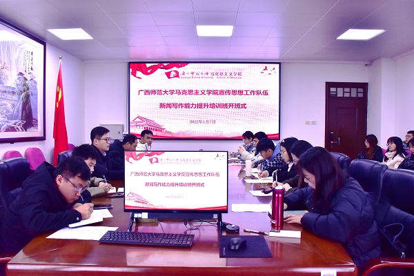 1月7日,马克思主义学院宣传思想工作队伍新闻写作能力提升培训班开班式于育才校区二文北楼506会议室顺利开展,卢俞成博士受邀作新闻写作能力提升培训班第1讲,学院全体专兼职辅导员、各党支部宣传委员、各学生组织宣传部学生干部参加,培训班由学院党委相关书记主持。