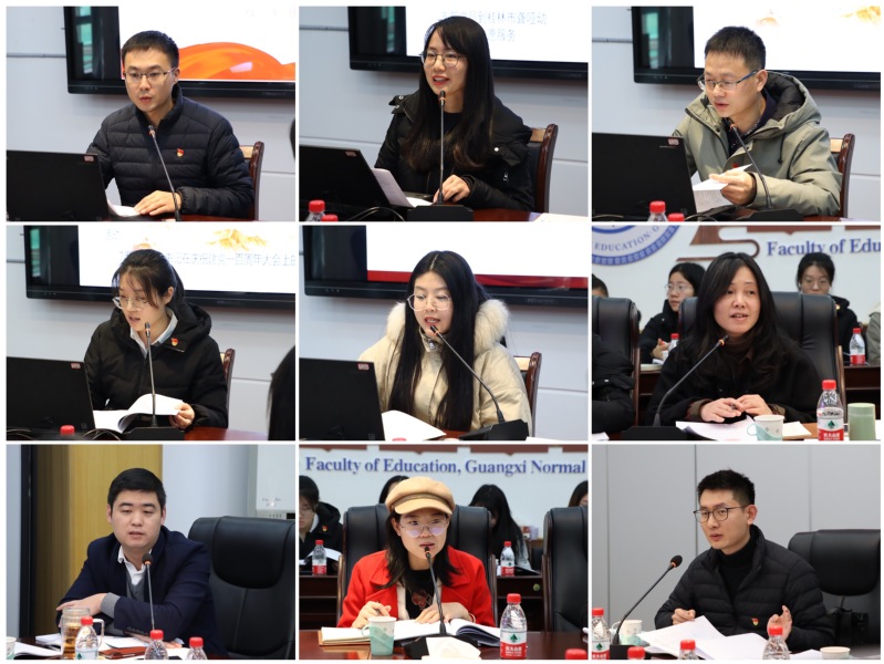 会议伊始,学部党委相关负责人简要介绍了校党委关于加强基层党建规范化标准化工作的要求,概要总结了2021年学部党建工作的基本成效、品牌建设等情况,充分肯定了各支部积极发挥党组织的战斗堡垒作用,在党史学习教育取得的突出成绩。随后,教育学系教工党支部、本科生第一党支部等9个支部经过充分准备,认真总结,分别从学习贯彻习近平新时代中国特色社会主义思想和党的十九大精神、开展党史学习教育、基层组织建设、党风廉政建设、支部特色、反思与展望等方面向大会作了口头述职。其余7个支部以提交了书面报告的形式进行述职。各支部统筹谋划,精心组织,以党史学习教育为抓手,以开展丰富活动为载体,突出支部特色,展现工作亮点,不断推进党建业务融合发展。在交流环节,各支部书记畅所欲言,分享党支部标准化规范化建设的心得与体会,为学部党建工作高质量发展献言建策。