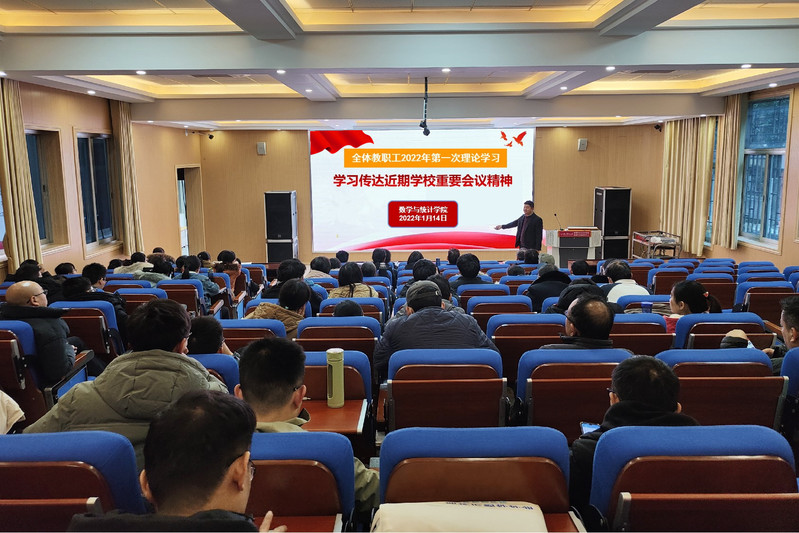 1月14日,数学与统计学院在育才校区召开教职工理论学习会议,学习传达近期学校多项重要会议精神,学院党委负责人主持会议,全体教职工参加学习。