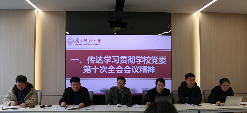 1月4日,法学院在育才校区第二文科综合楼北楼1004会议室召开教职工大会,传达学习贯彻中共广西师范大学第十一届委员会第十次全体会议精神,会议由学院党委负责人主持。