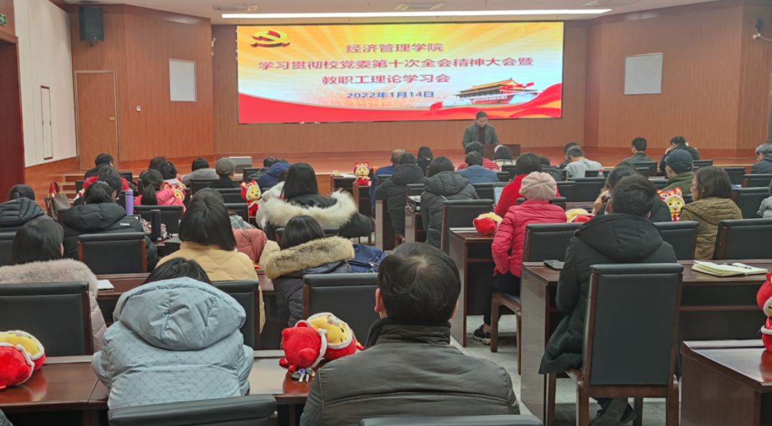 1月14日,经济管理学院在育才校区国教楼201会议室召开学习贯彻学校党委第十一届十次全会精神暨教职工理论学习会,学院领导班子、全体教师共同参加会议,会议由学院党委负责人主持。