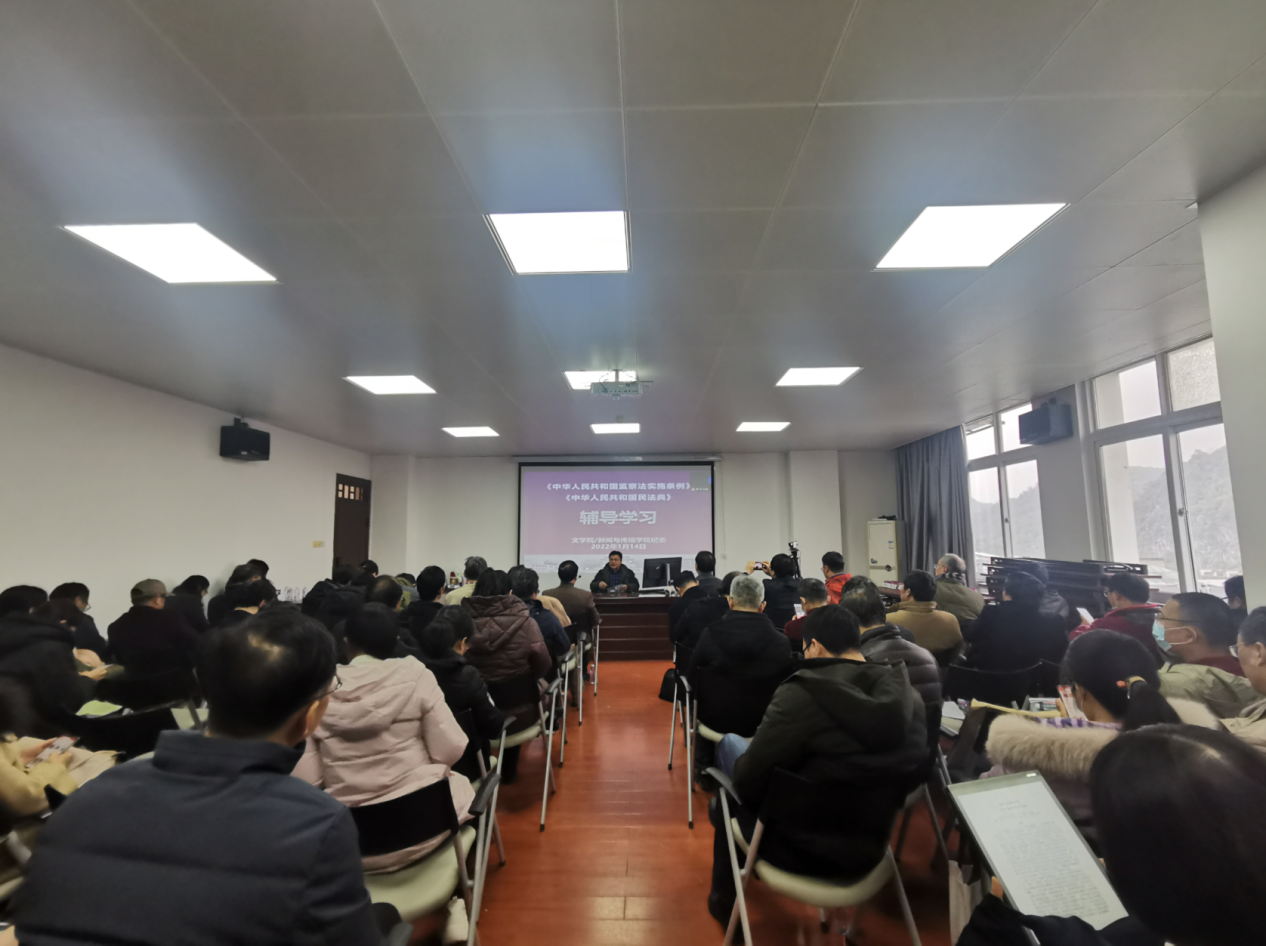 为总结本学期工作,部署新一年的工作任务,文学院/新闻与传播学院于1月14日在育才校区文二楼810、811会议室线上线下同步举行全院教职工大会,会议由学院党委负责人主持,学院党政领导班子、学院全体教职员工共100余人参加会议。
