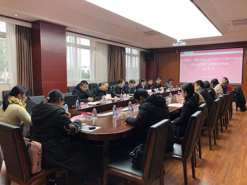 1月15日,我校在育才校区国教中心2号楼211会议室召开知联会、留联会深入学习党的十九届六中全会和自治区第十二次党代会精神座谈会。校党委常委、副校长、校留联会会长苏桂发出席会议并讲话,校党委常委、统战部部长、校知联会顾问黄海波领学自治区第十二次党代会精神。