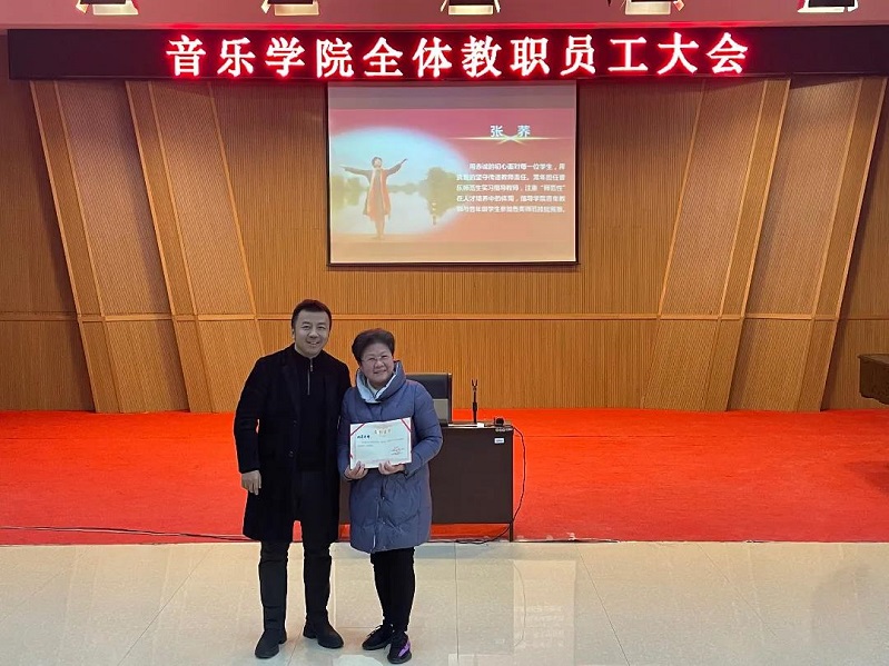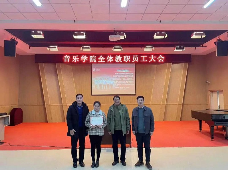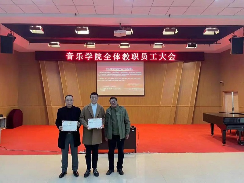 辞旧迎新展宏图,锐意进取谱华章。音乐学院2021年度团体、个人突出贡献奖颁奖典礼在音乐楼101多功能厅顺利举行。学院党政领导班子、全体教职工参加典礼。活动由学院党委相关负责人主持。