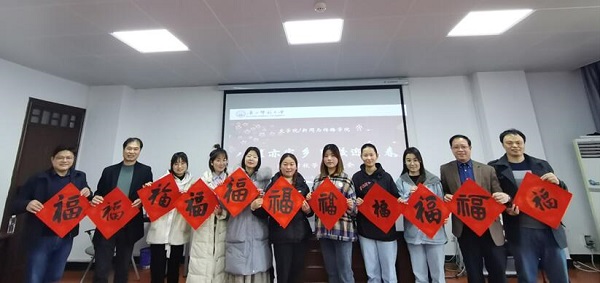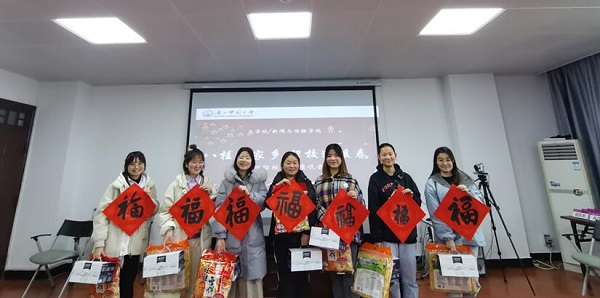 座谈结束后,与会领导将学院精心准备的“温暖礼包”和“福”字送到每位同学的手中,并合影留念。同学们纷纷表示,学院心系学生健康安全,感到很暖心温馨。2019级汉语言文学专业麦尔江·金斯别克说:“作为一名新疆学子,因疫情影响不能回家,这次座谈会老师们一句句的关怀、一句句学业上的问候与鼓励,让我们感受到了学院对留校学生的重视和关心,感受了不一样的年味。”2019级新闻学专业何洋说:“今天参加座谈会,收到学院的“温暖礼包”,抚慰了我们的思乡情绪,倍感温暖,相信待凛冬过去,草木初晴,一定会有新的相逢将温暖延续。”