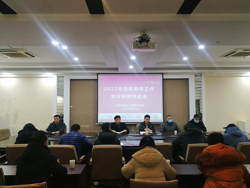 2月18日,后勤保障处/后勤服务集团在育才校区后勤会议室召开2022年全区教育工作会议及全区教育系统疫情防控工作视频会议精神传达暨开学前疫情防控工作布置会。后勤保障处/后勤服务集团领导班子全体成员、后勤各部门副经理及以上人员参加会议。会议由后勤保障处/后勤服务集团党委主要负责人主持。