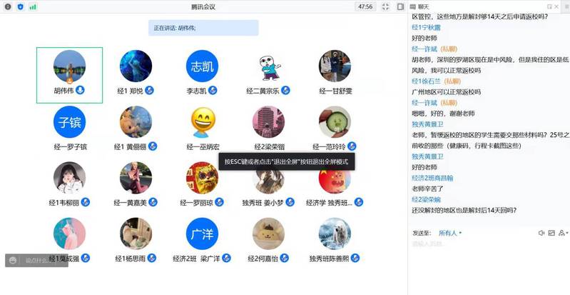 此外,班会上,老师们还提醒同学们要注意以下几点:一是须严格按照上报个人返校行程信息,因临时原因更改乘车时间、乘车方式需提前联系辅导员审核;二是及时购买“点对点”专线公交车票,到达桂林的车站后集中、统一返校;三是进入校园需配合检查,进行行李消杀、更换口罩、测温、扫码出示健康码、出示易班审核码身份核验后方可入校。由家长驾车送校的须在对应校门口入校;四是学生入校后,登录易班进行网络登记到校,并完善个人抵校交通信息,需登记从车站到学校“点对点”交通方式及车牌号码;五是学生返校后,须第一时间将返校行程信息、行程卡发辅导员复核,如未按要求返校,根据情况进行集中隔离。六是及时关注学校、学院的疫情防控和返校通知。