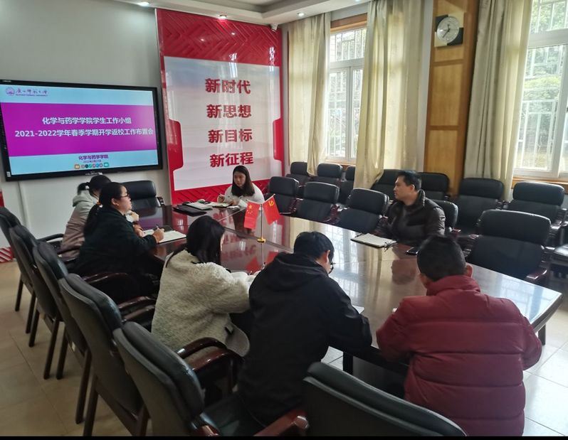 为贯彻落实好党的十九届六中全会精神,扎实做好疫情防控管理,严格部署学院学生开学返校各项工作,营造安全稳定的学院环境,2月23日,化学与药学学院学生工作小组在学院106会议室组织召开春季学期返校工作布置会。学院学生工作负责人、团委工作负责人、专职辅导员、参加会议。